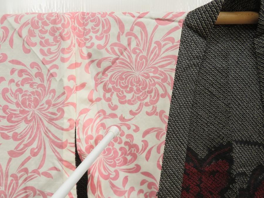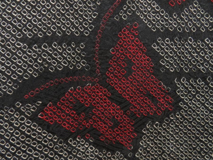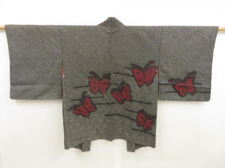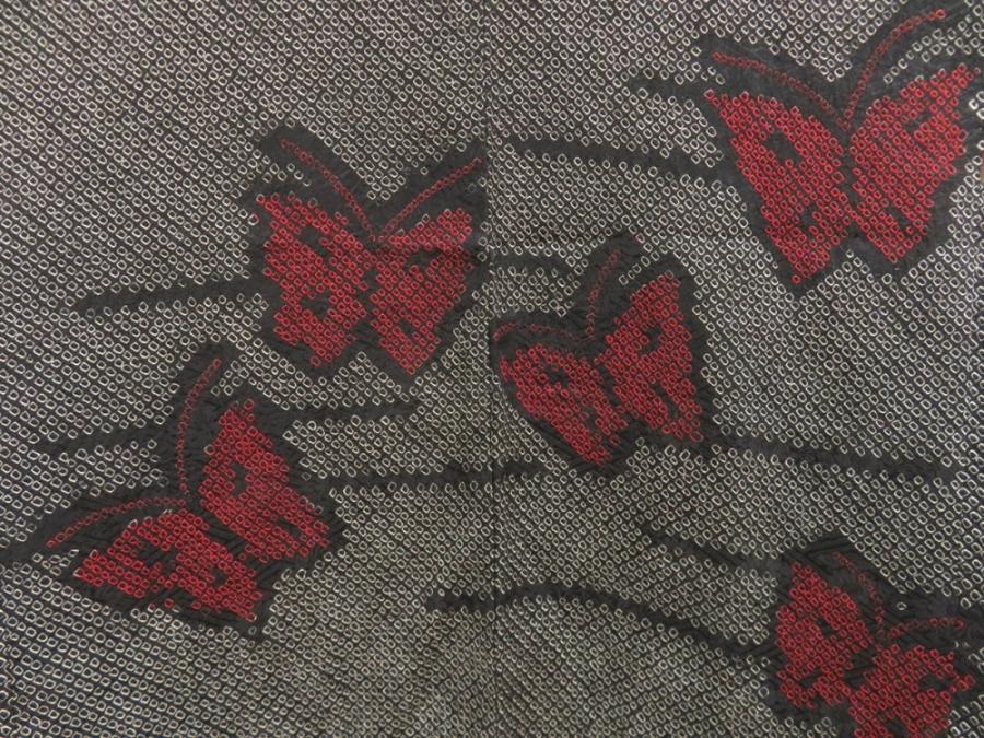 5803T01z410 Vintage Japanese Kimono Silk SHIBORI HAORI Butterfly Black