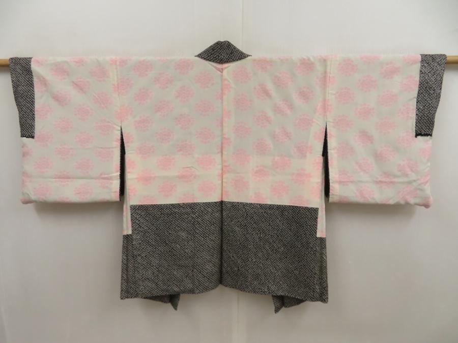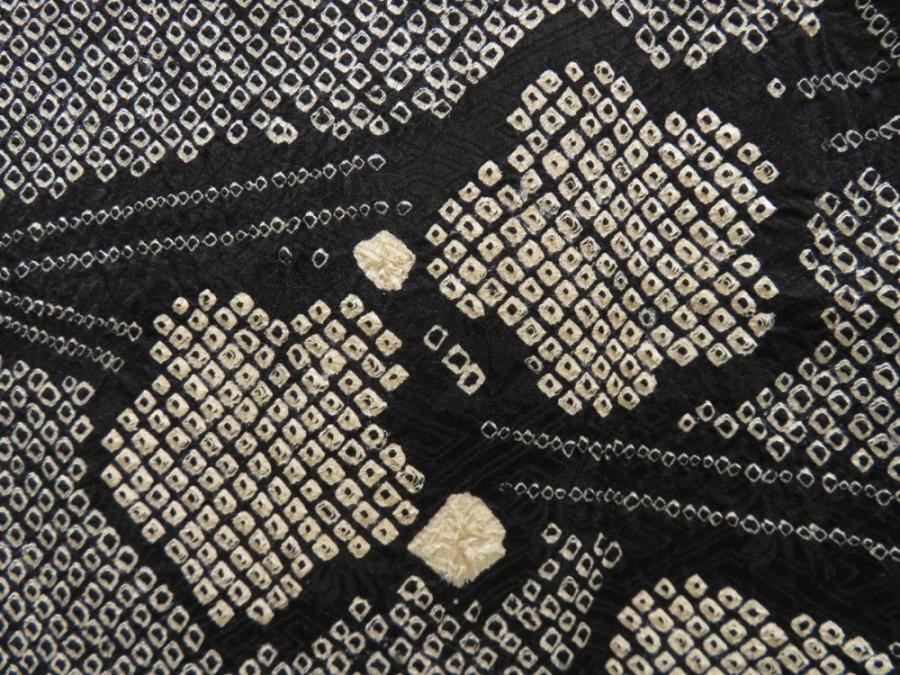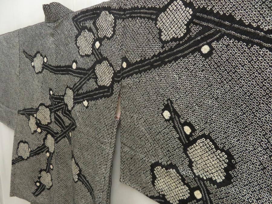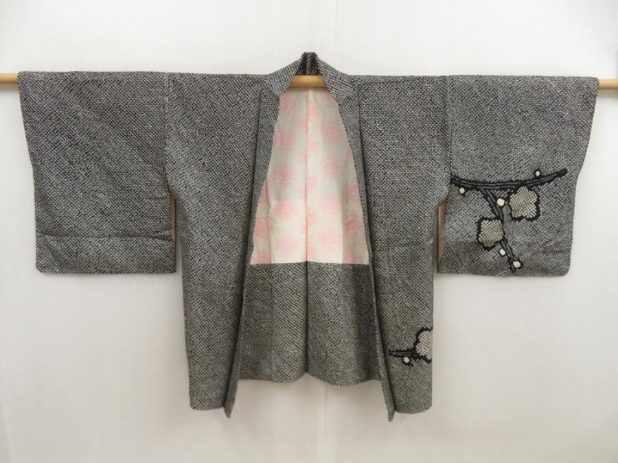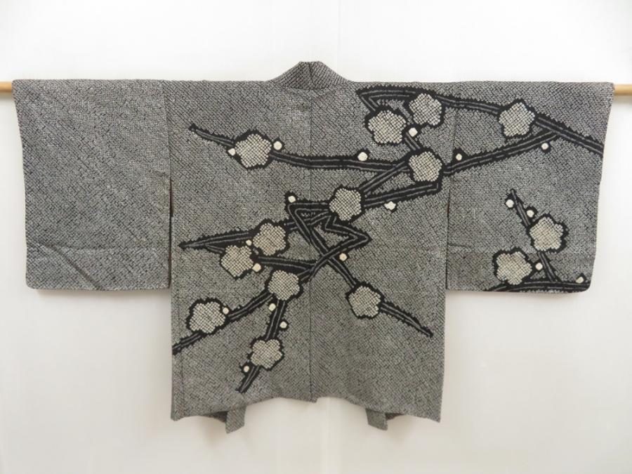 5803T02z500 Vintage Japanese Kimono Silk SHIBORI HAORI Plum branch Black