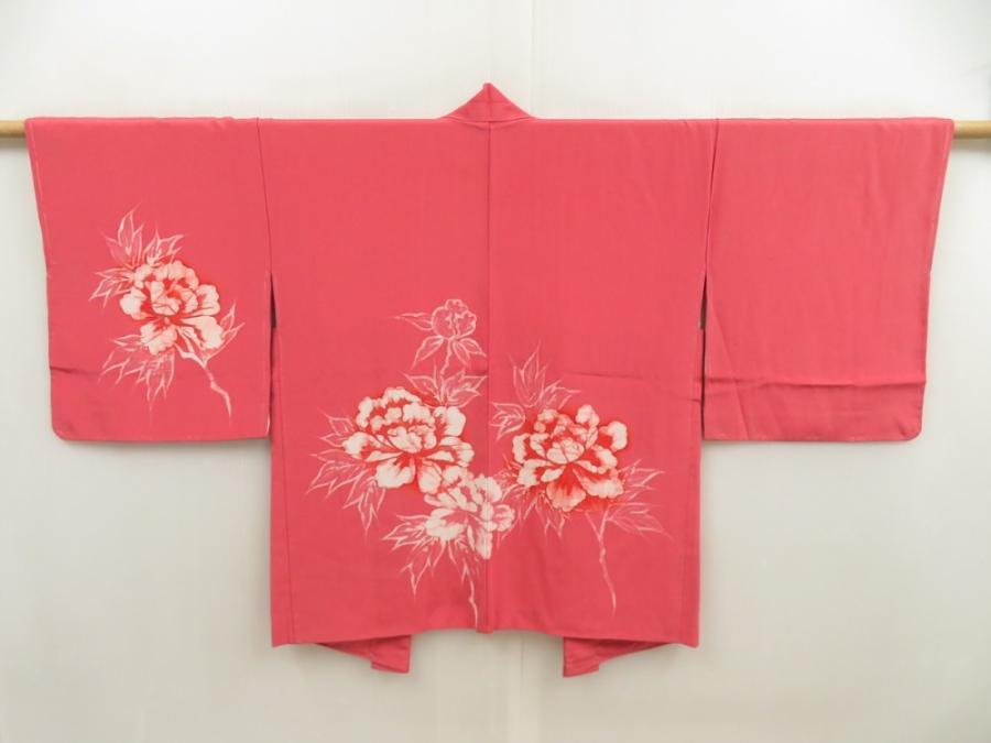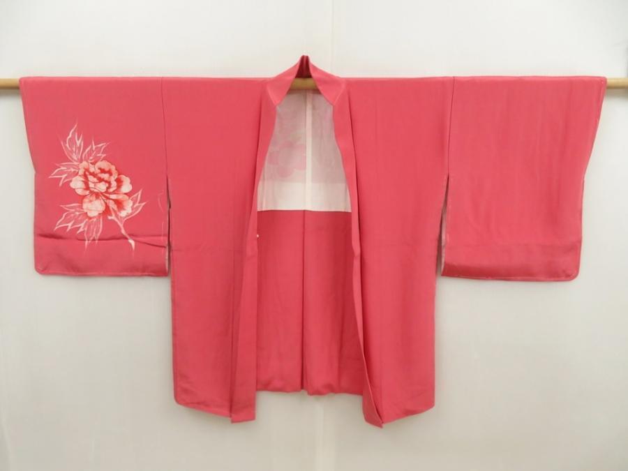 5803T07z550 Vintage Japanese Kimono Silk HAORI Flower Pink