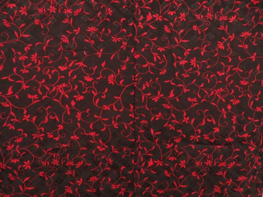5803T08z370 Vintage Japanese Kimono Silk HAORI Flower Black Red