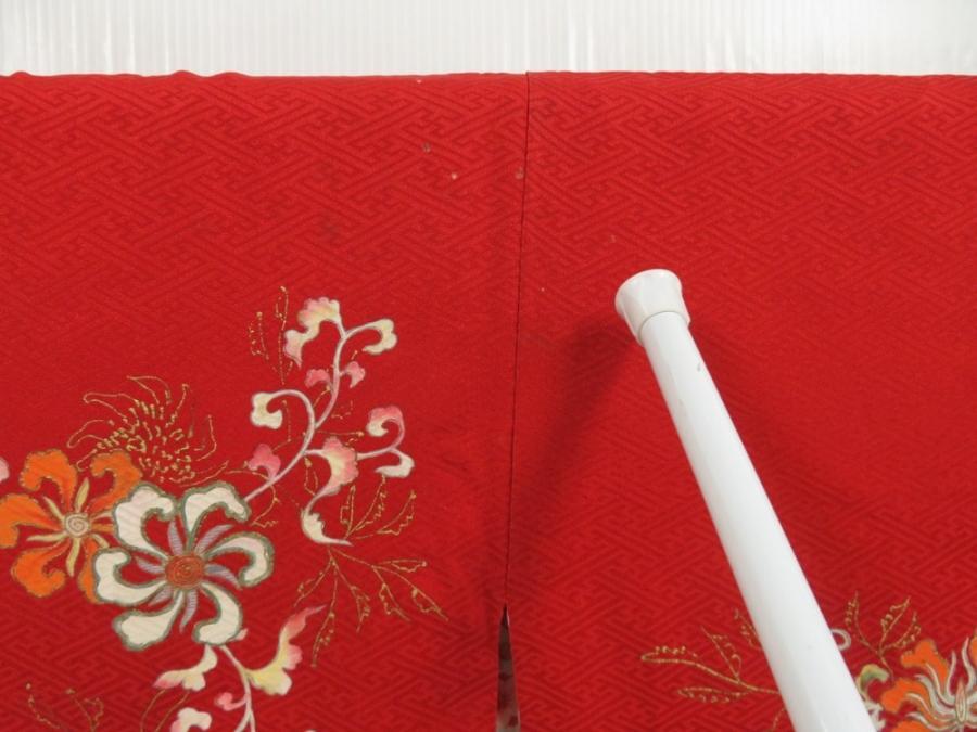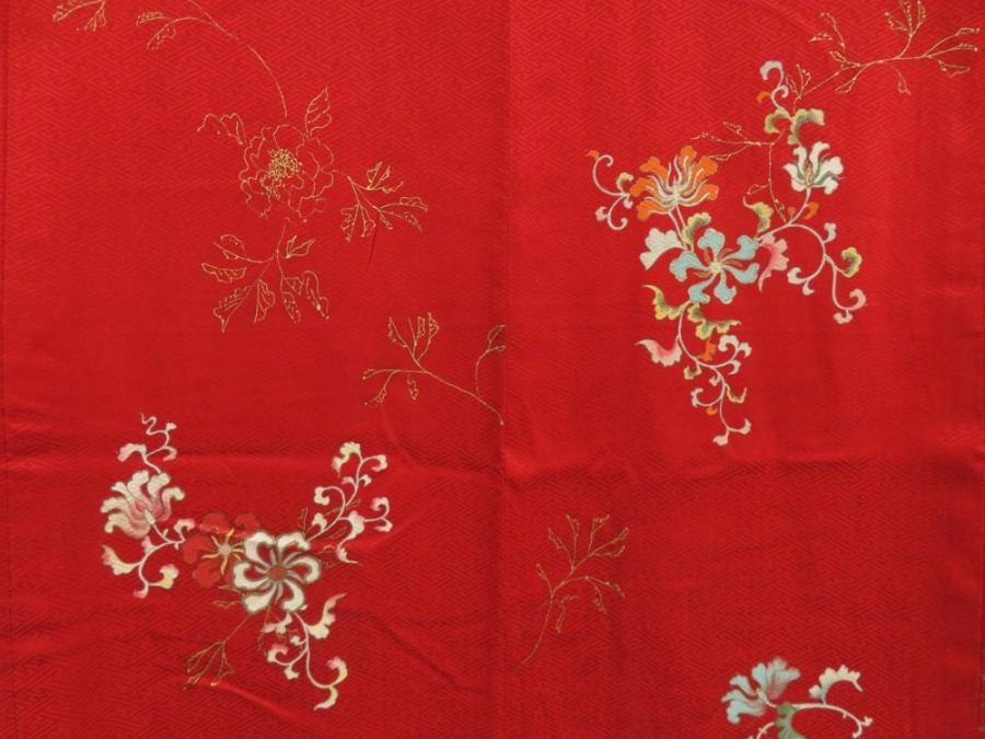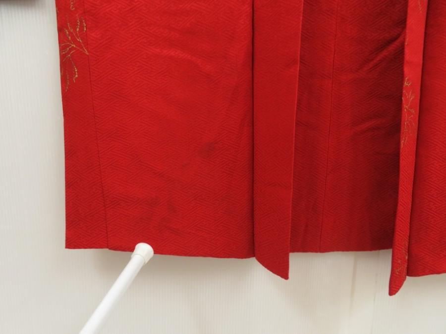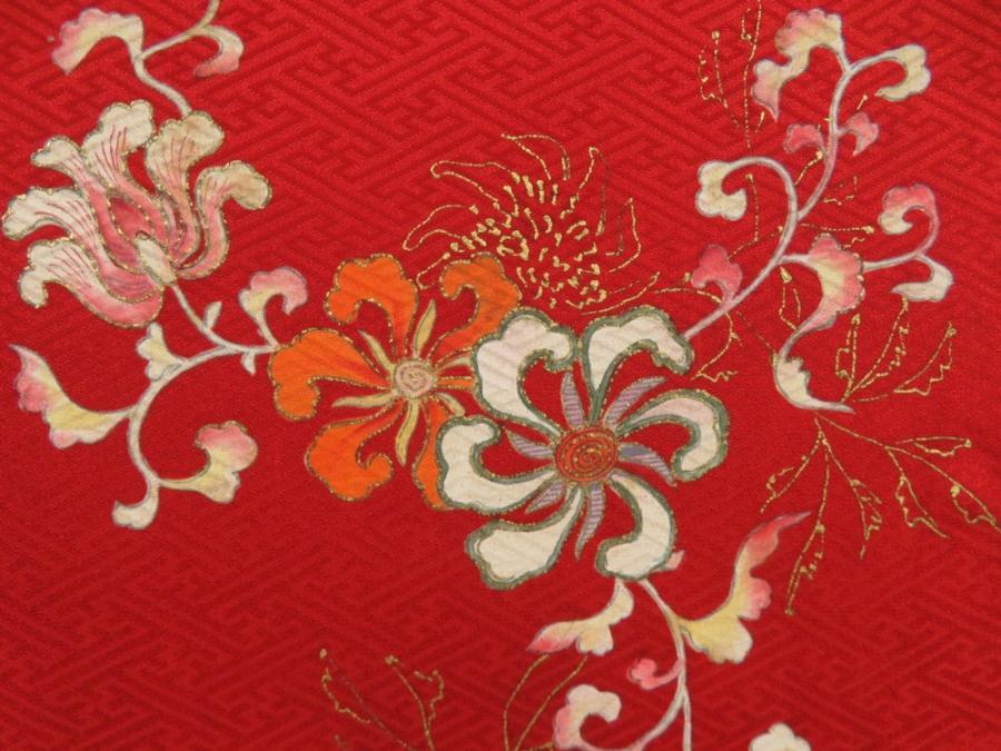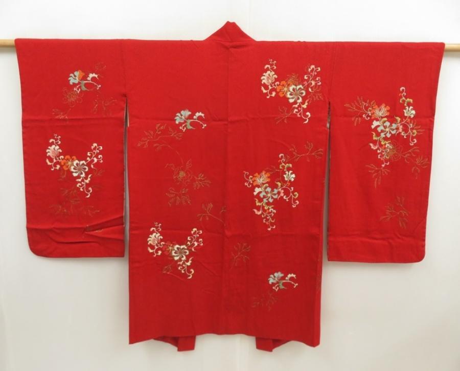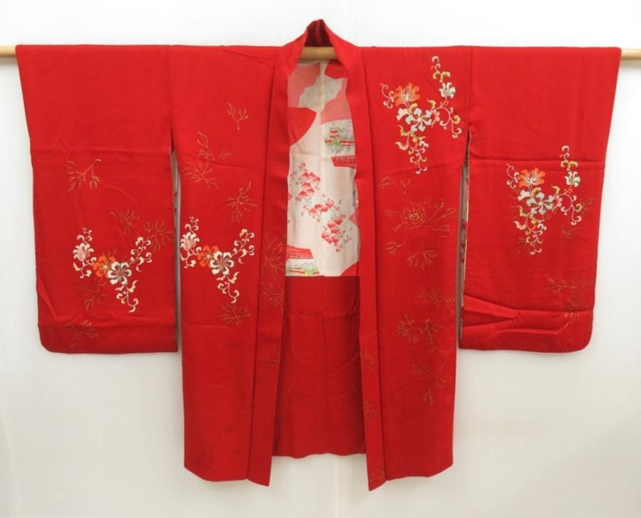 5803T11z590 Vintage Japanese Kimono Silk LONG HAORI Flower Dark red