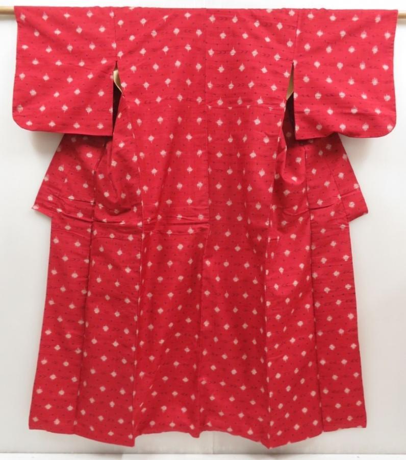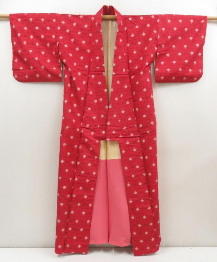 5803T12z720 Vintage Japanese Kimono Silk TSUMUGI Red-Pink