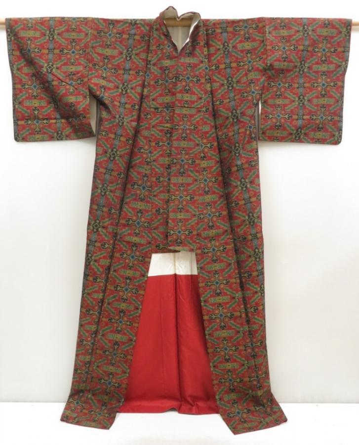 5803T13z840 Vintage Japanese Kimono Silk TSUMUGI Dark red