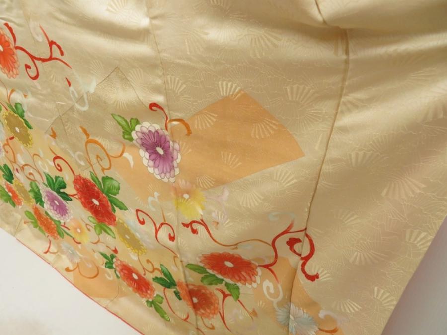 5803T14z1150 Vintage Japanese Kimono Silk FURISODE Chrysanthemum Light peach
