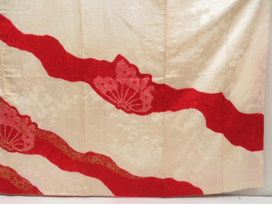 5806T09z1040 Vintage Japanese Kimono Silk FURISODE Butterfly Dark red