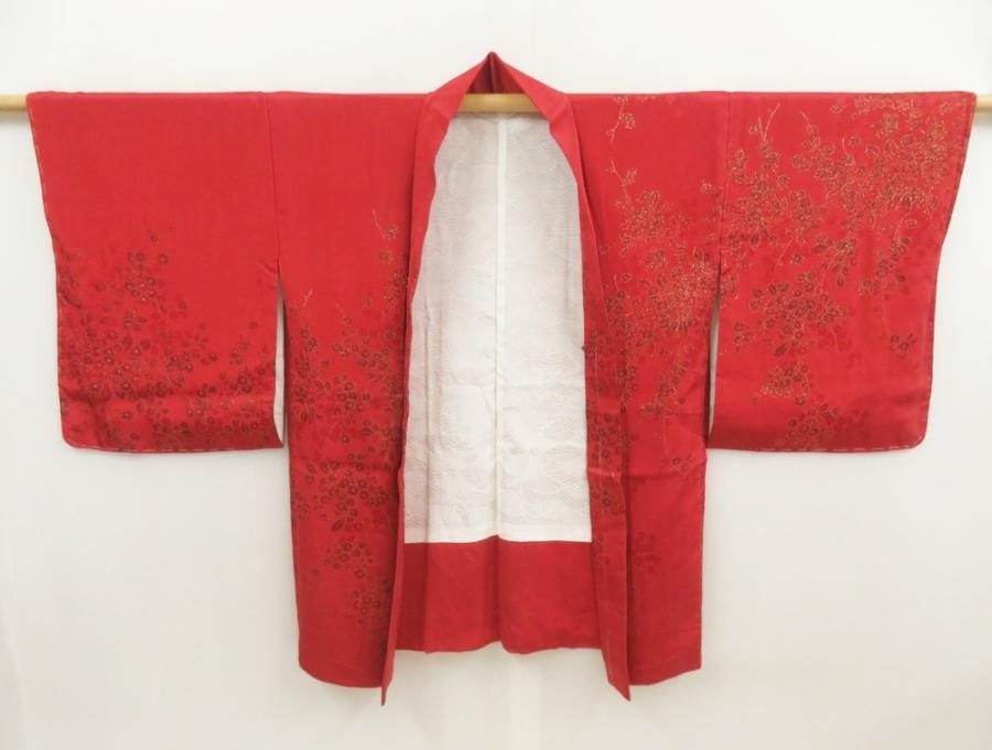 5806T10z520 Vintage Japanese Kimono Silk HAORI Flower Dark red