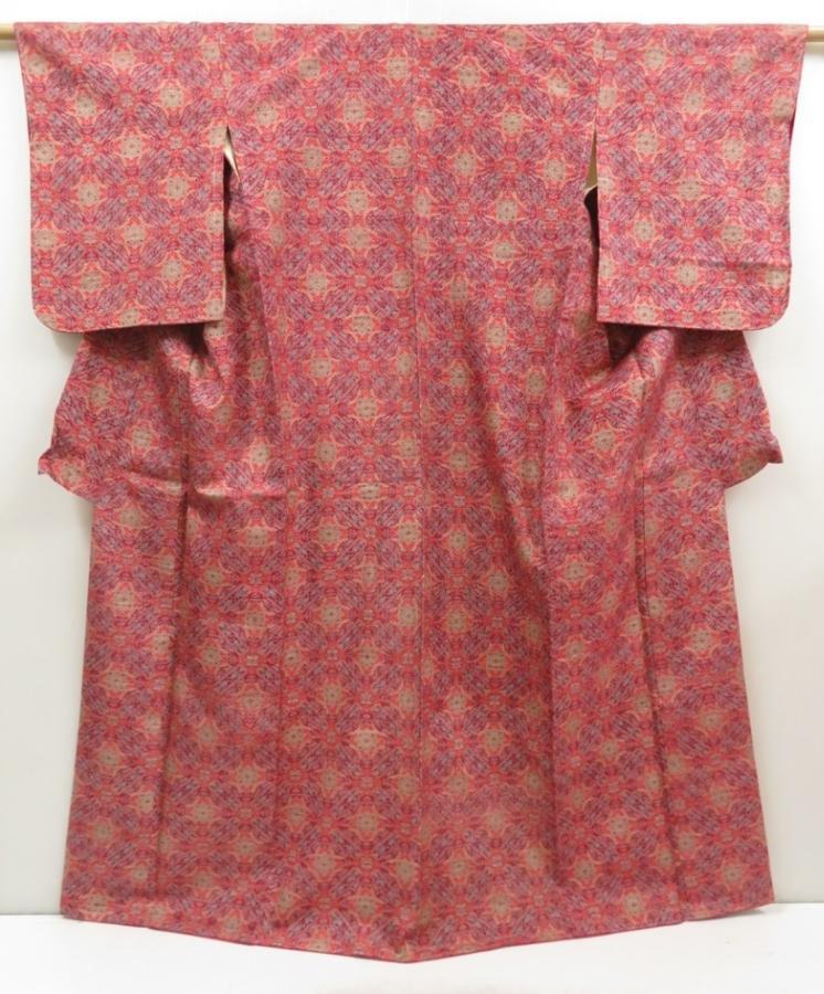 5806T12z800 Vintage Japanese Kimono Silk TSUMUGI Dull red