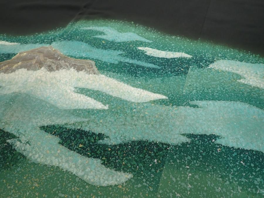 1G02z250 Japanese Kimono Silk FABRIC Wave Black 61.0x30.3