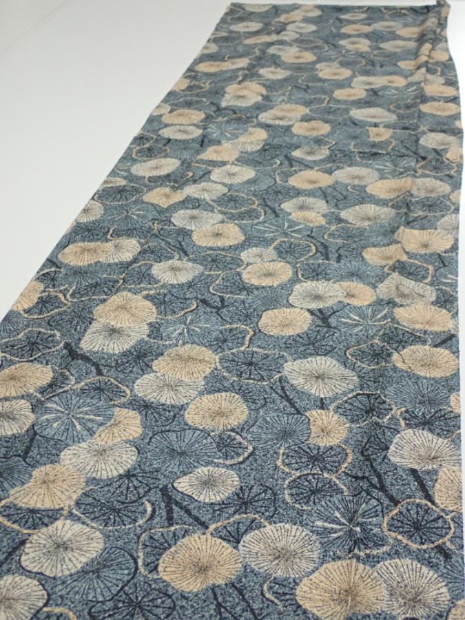 1G04z90 Japanese Kimono Silk FABRIC Plum branch Blue-Gray 70.9x15.0