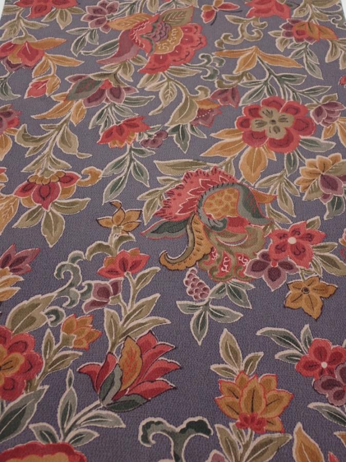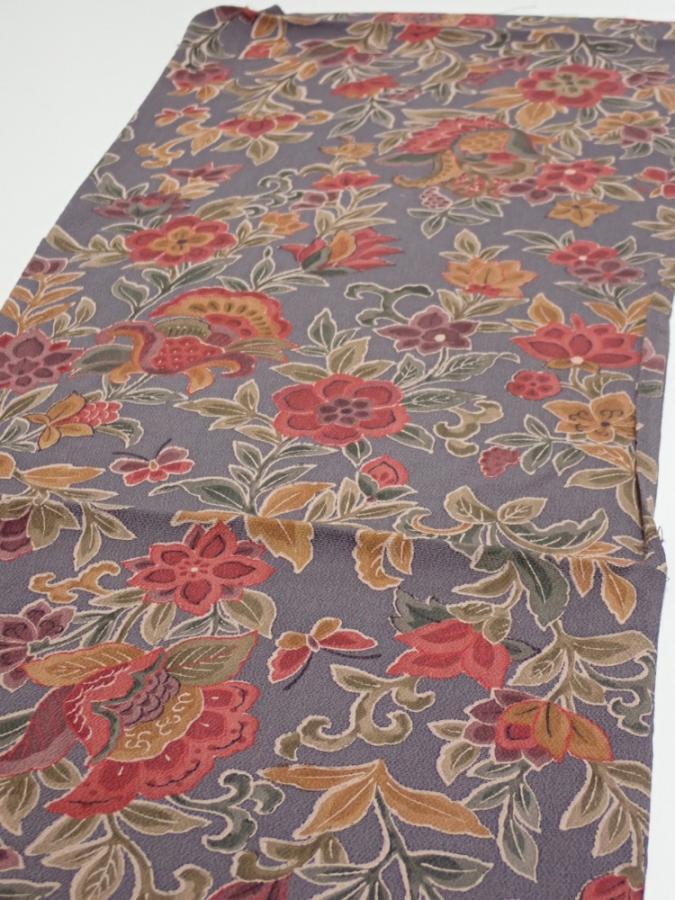 1G01z70 Japanese Kimono Crepe Silk FABRIC Flowers Purple-Gray 42.9x14.0