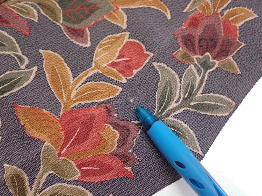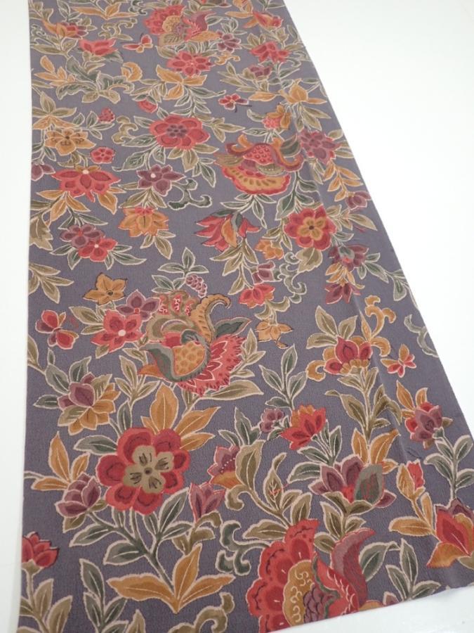 1G05z100 Japanese Kimono Crepe Silk FABRIC Flowers Purple-Gray 66.9x14.2