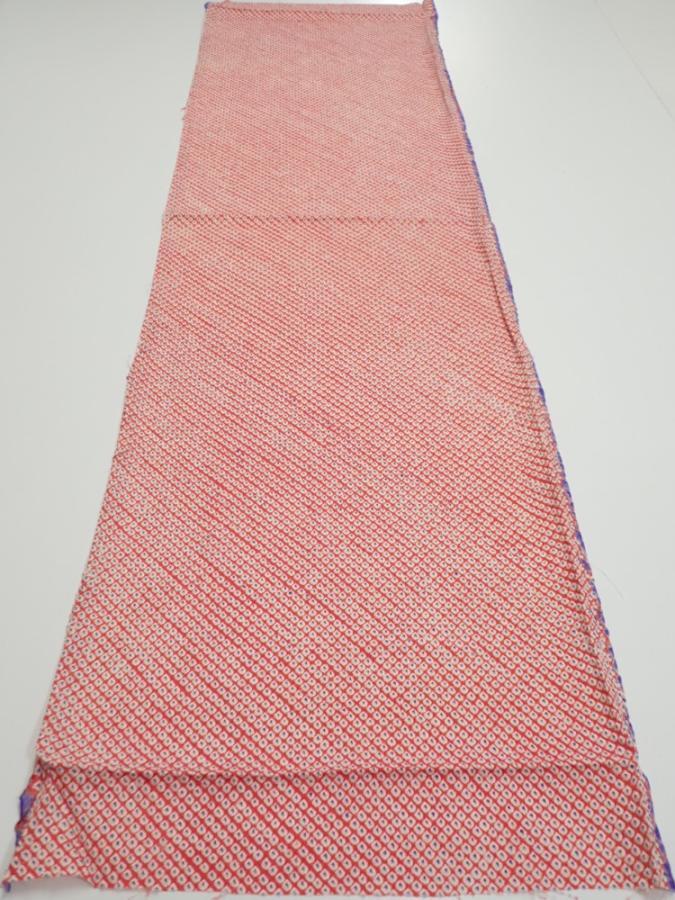 1G01z50 Japanese Kimono Silk FABRIC Shibori Orangered 49.6x14.6