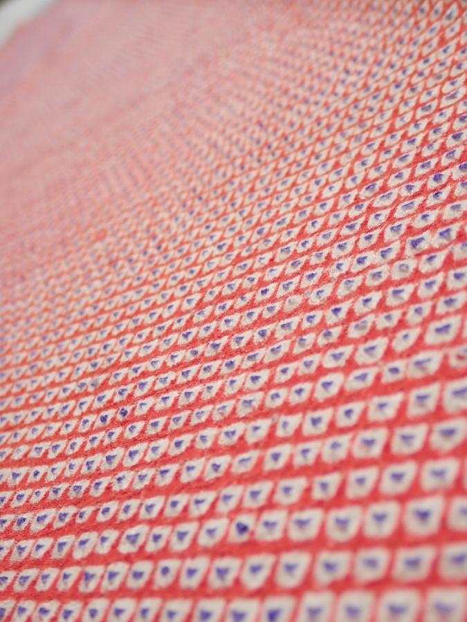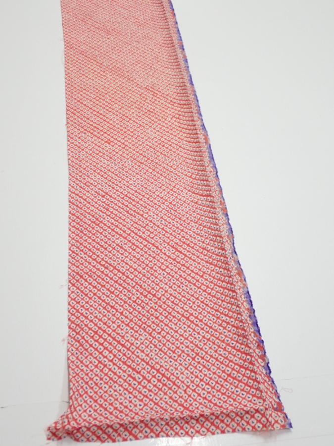 1G08z30 Japanese Kimono Silk FABRIC Shibori Orangered 60.2x7.5