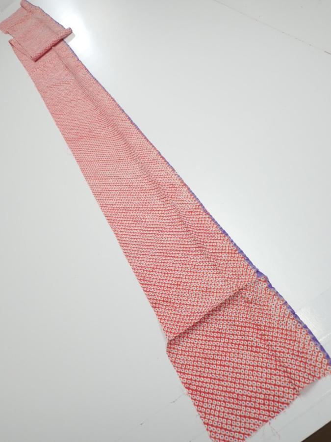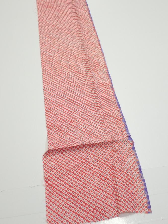 1G09z50 Japanese Kimono Silk FABRIC Shibori Orangered 89.0x6.9