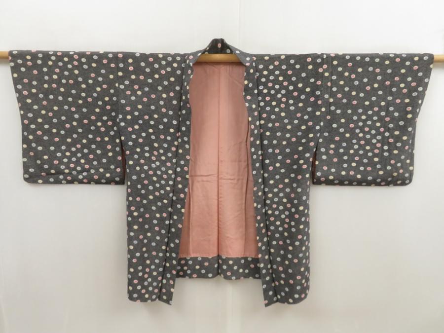 5810T01z490 Vintage Japanese Kimono Silk HAORI Flower Black