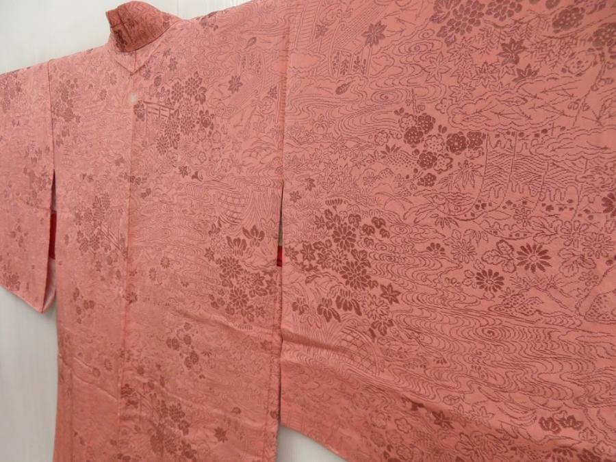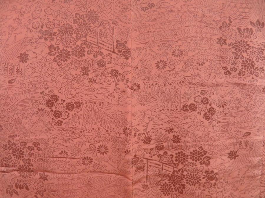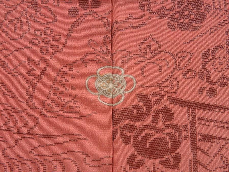 5810T02z630 Vintage Japanese Kimono Silk HAORI Flowers Coral pink