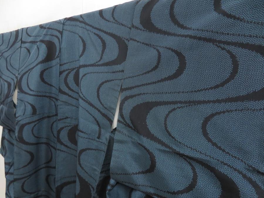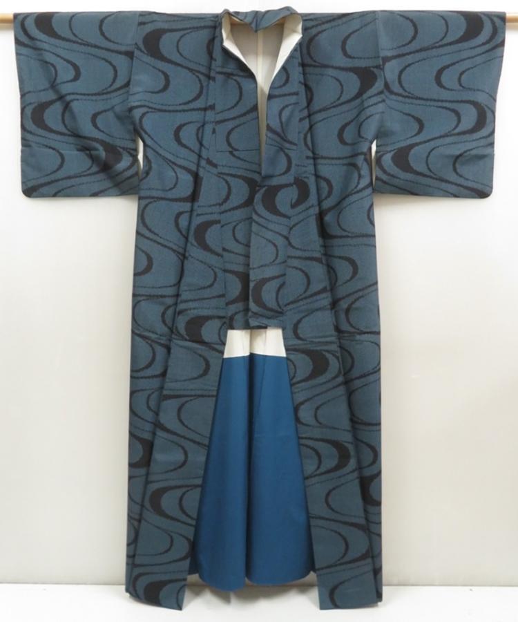 5810T14z650 Vintage Japanese Kimono Silk TSUMUGI Stream Steel blue