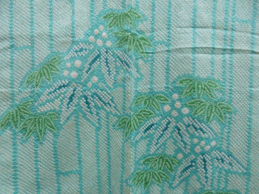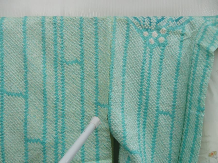 5814T04z540 Vintage Japanese Kimono Silk SHIBORI HAORI Bamboo Mint green