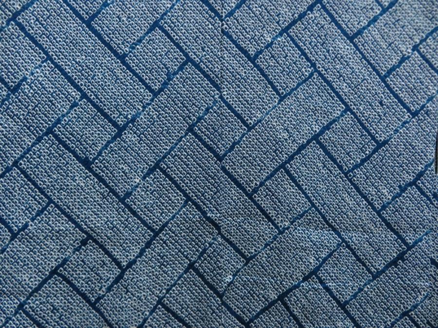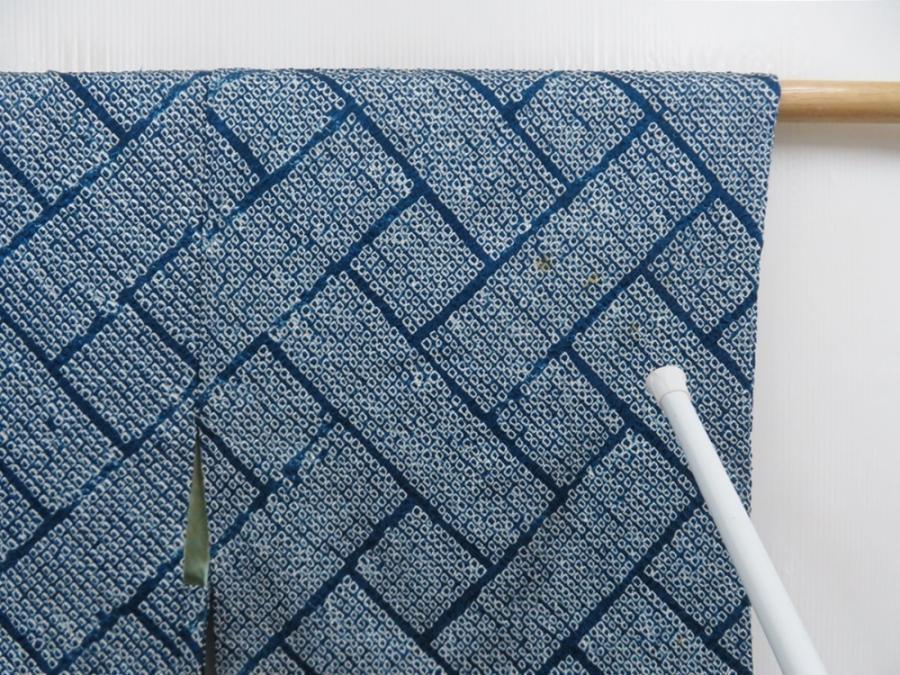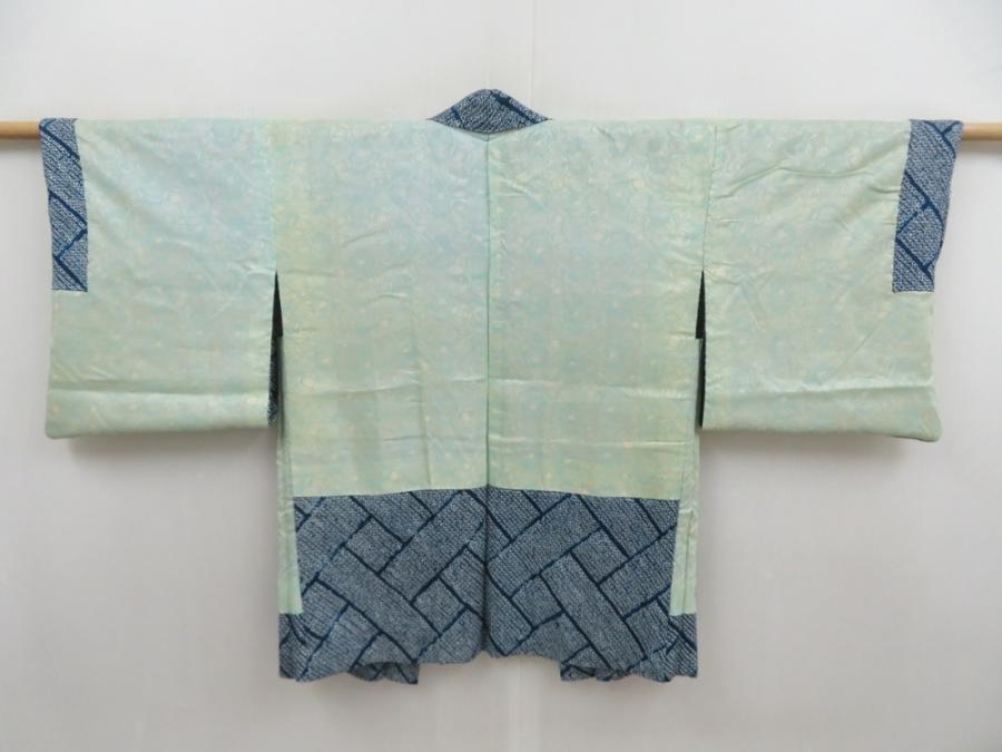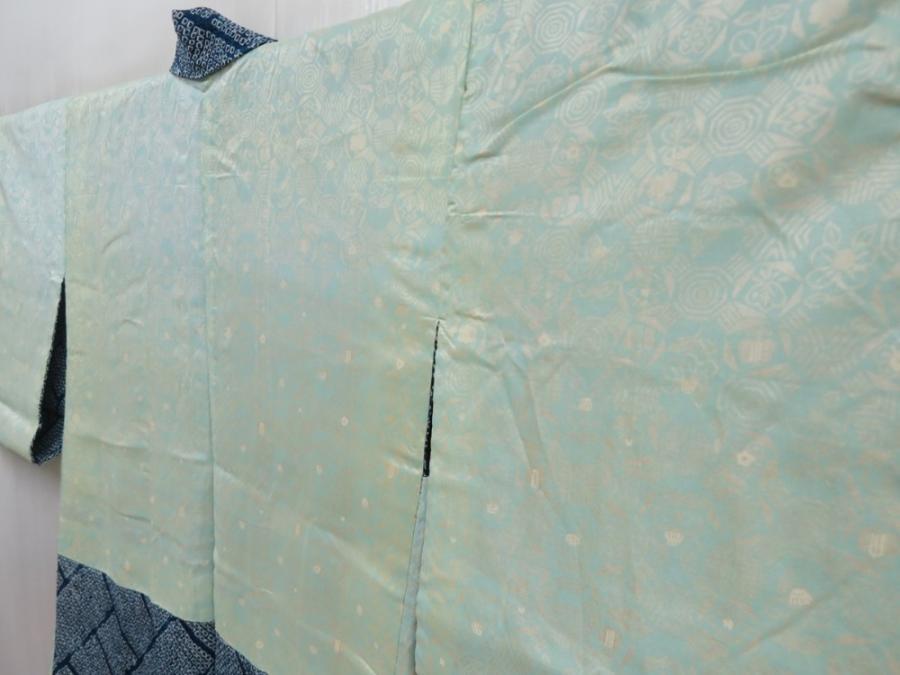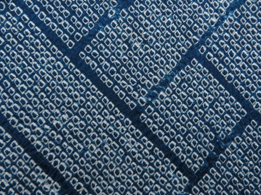 5814T06z410 Vintage Japanese Kimono Silk SHIBORI HAORI Dark cyan blue