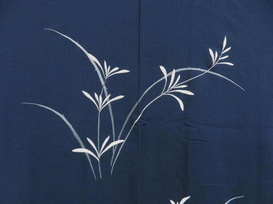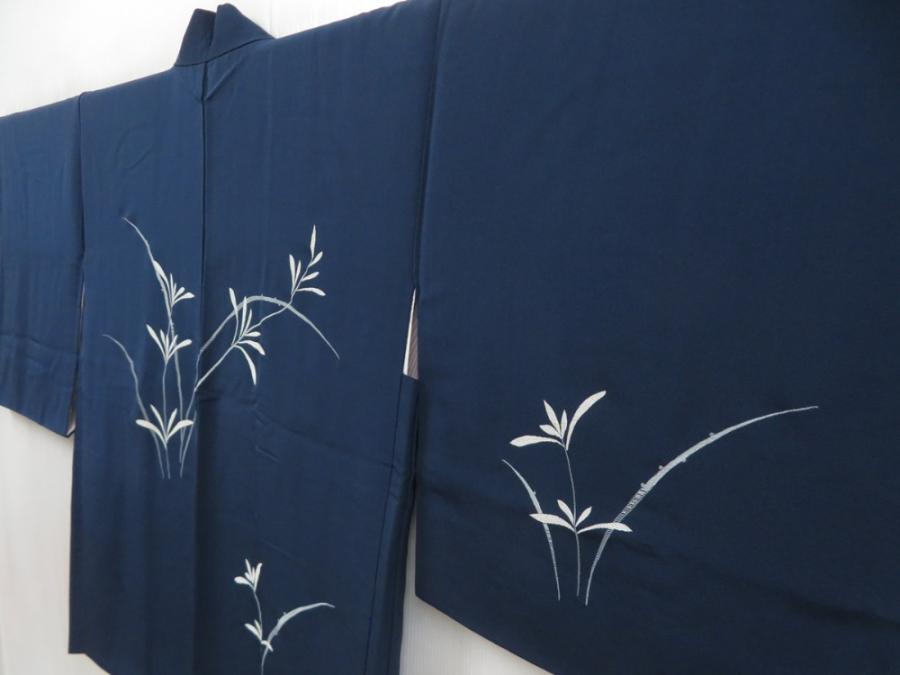 5814T07z650 Vintage Japanese Kimono Silk HAORI Flower Navy
