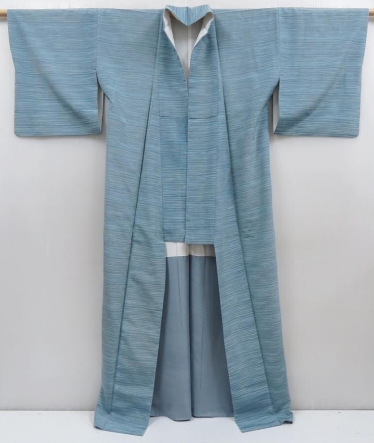 5814T14z850 Vintage Japanese Kimono Silk TSUMUGI Dull sea blue