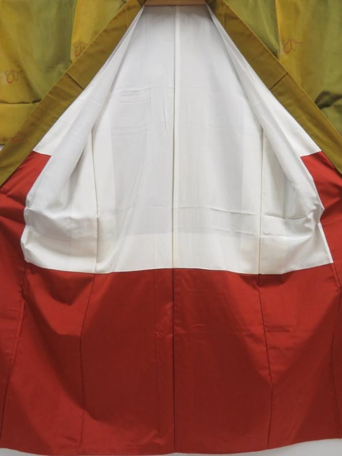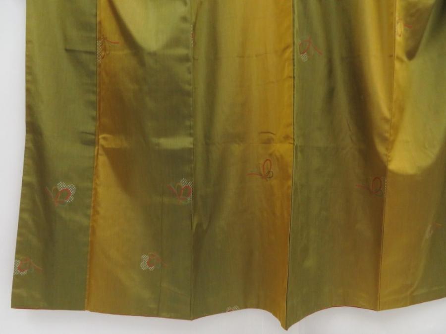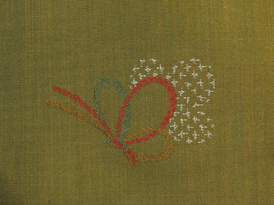 5816T011z790 Japanese Kimono Silk TSUMUGI Butterfly Olive green