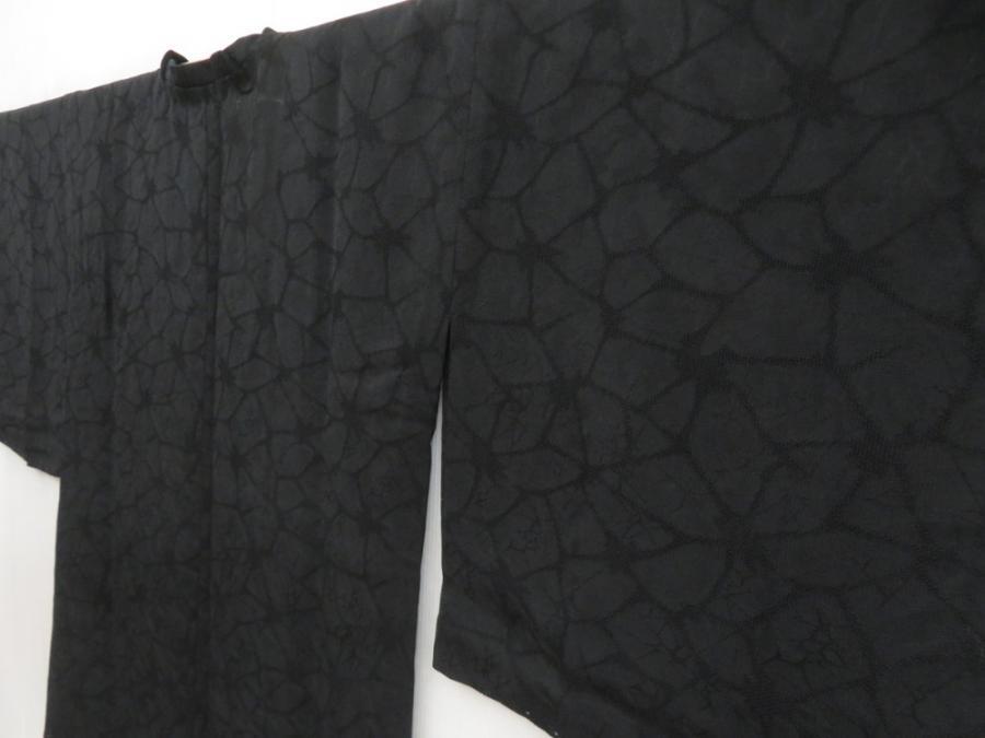 5816T03z350 Vintage Japanese Kimono Silk See through HAORI COAT Black