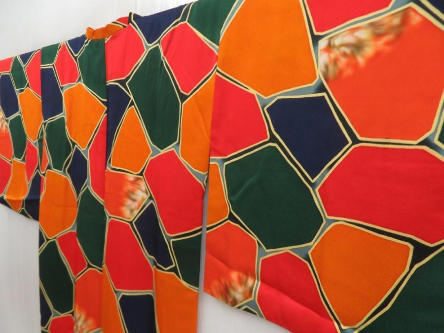 5816T05z560 Vintage Japanese Kimono Silk HAORI COAT Dark orange