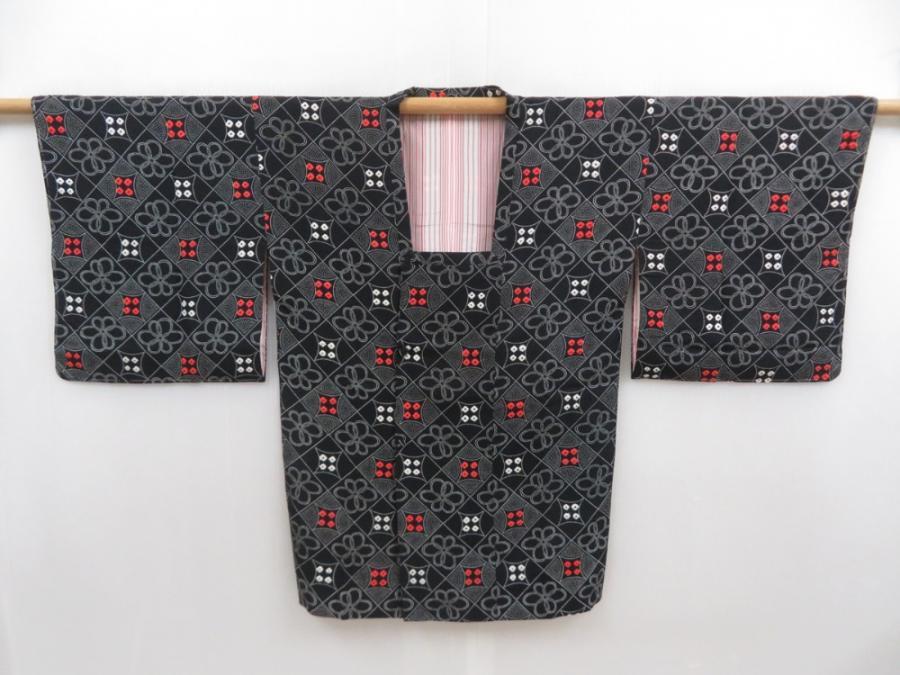 5816T06z540 Vintage Japanese Kimono Silk HAORI COAT Black