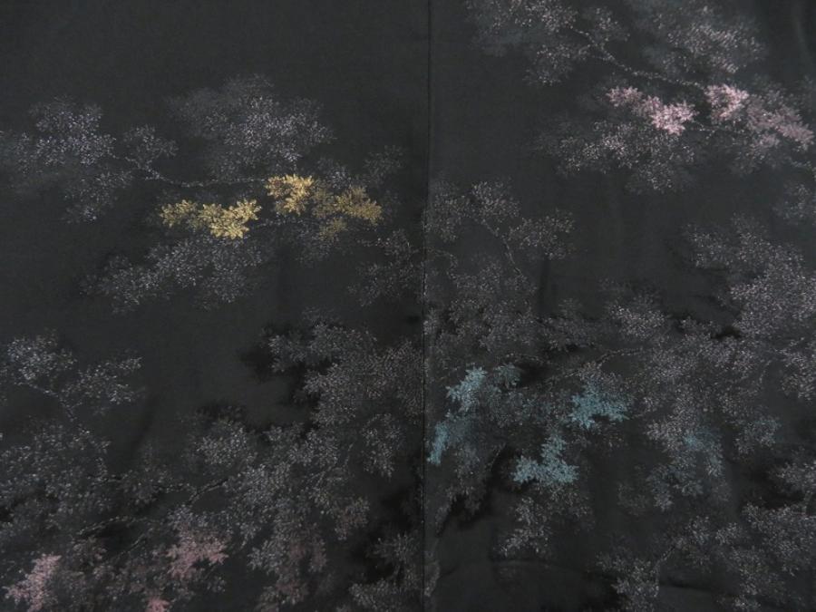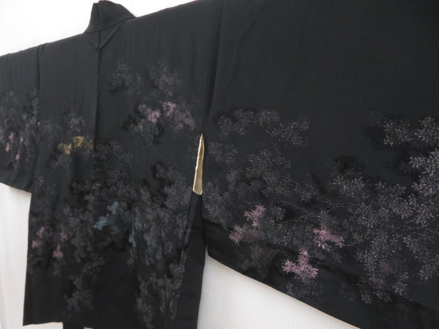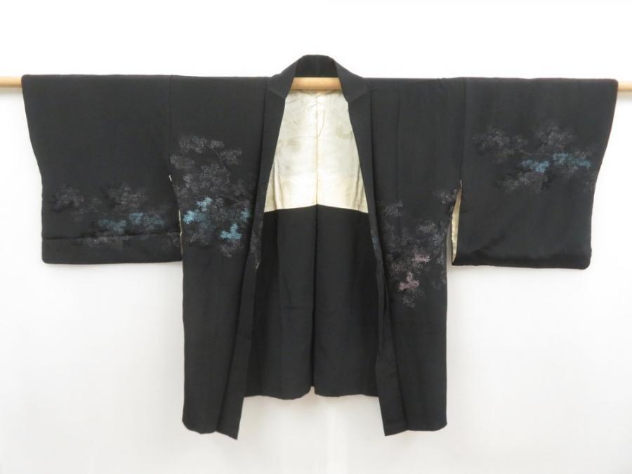 5816T09z520 Vintage Japanese Kimono Silk HAORI Trees Black