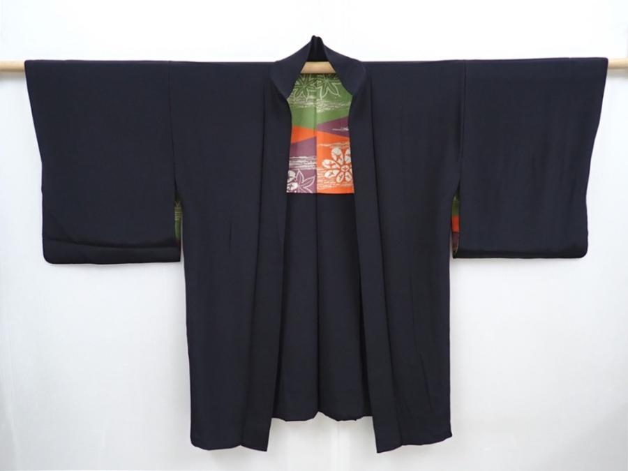 5820T10z560 Vintage Japanese Kimono Silk HAORI Black