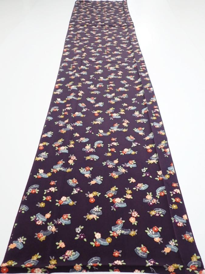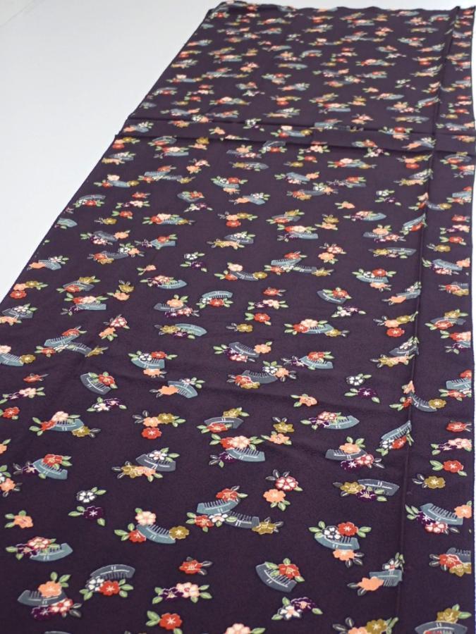 2Q05z100 Japanese Kimono Silk FABRIC Camellia Dark grape 67.7x14.6