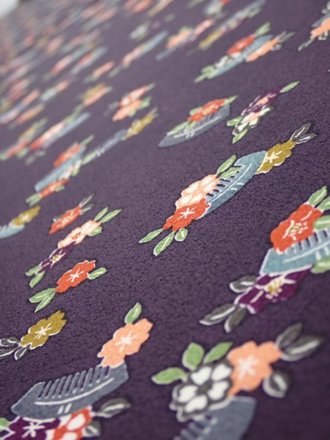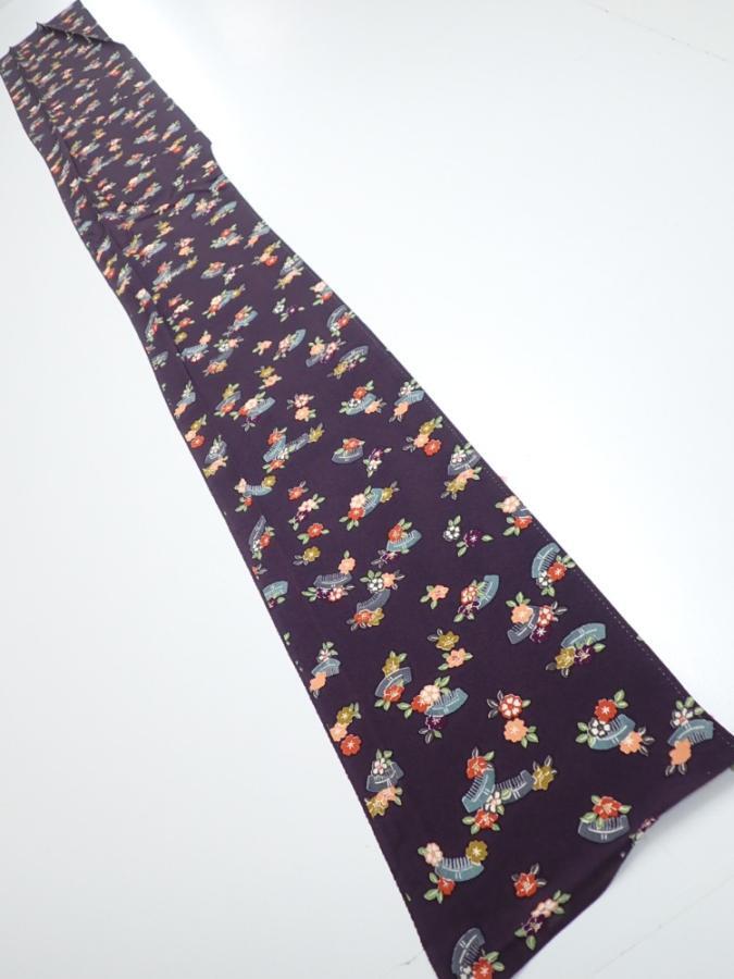2Q07z50 Japanese Kimono Silk FABRIC Camellia Dark grape 60.6x7.7
