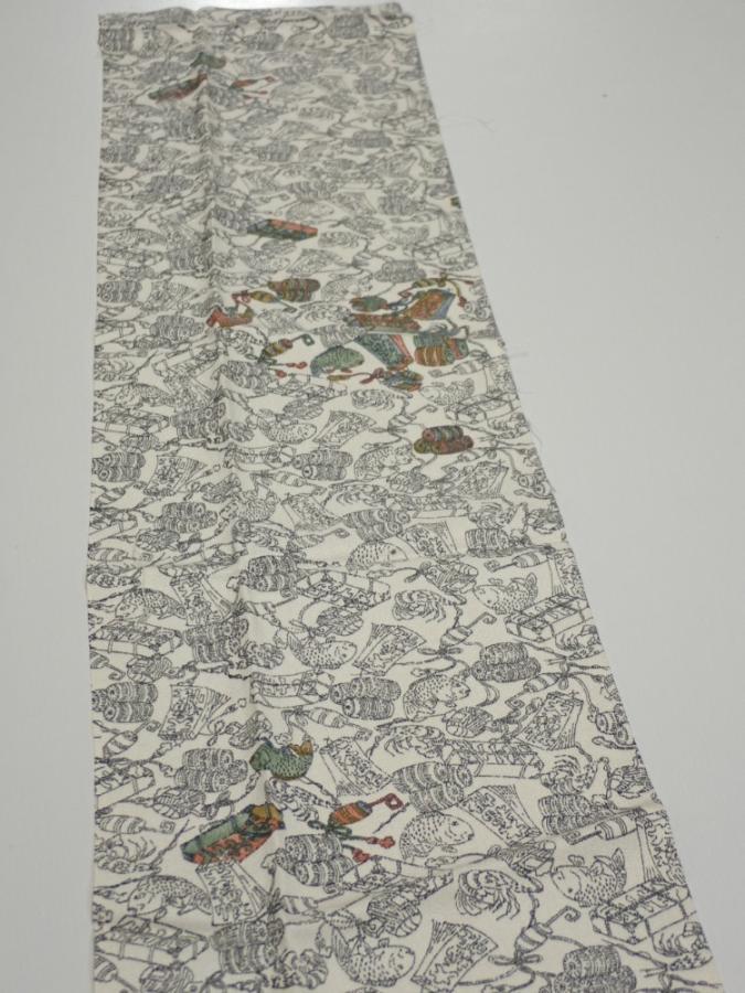2W10z30 Japanese Kimono Silk FABRIC Sea bream Off-white 39.0x7.1