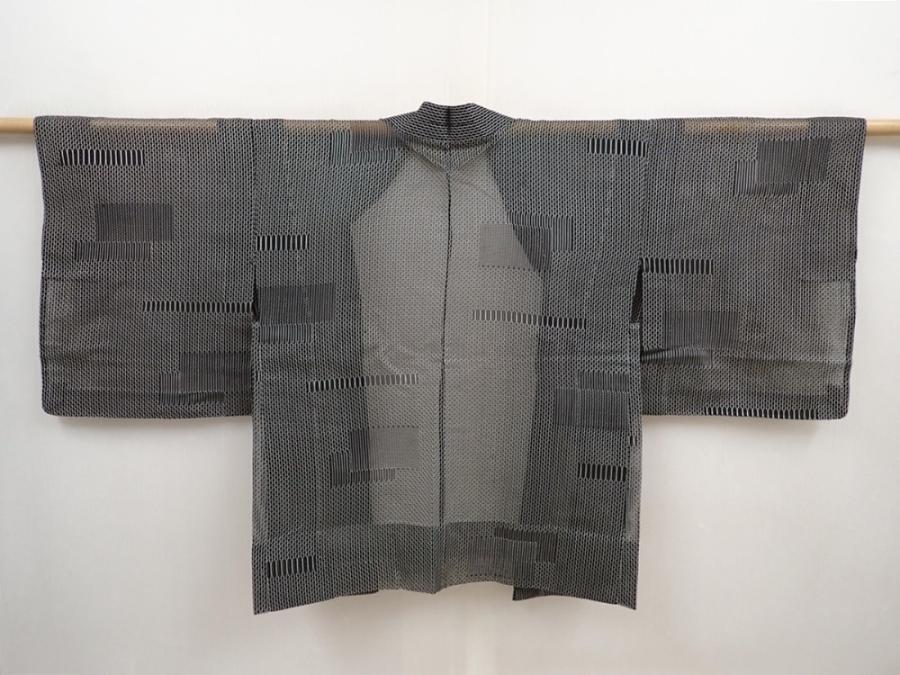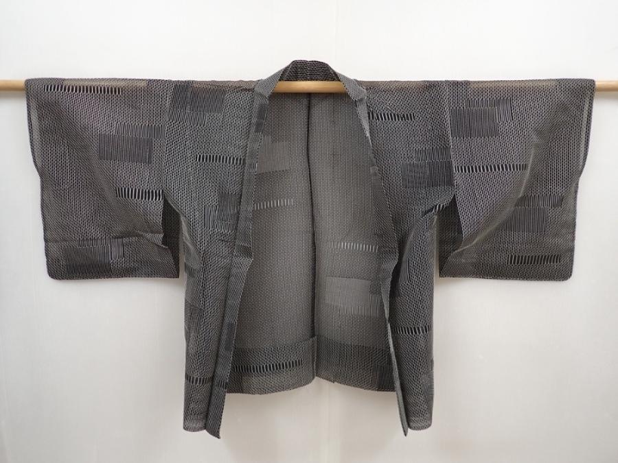 5822T01z300 Vintage Japanese Kimono Blend silk See through HAORI Black