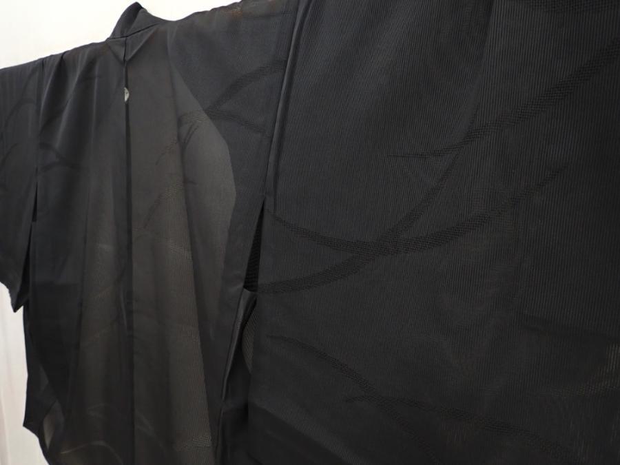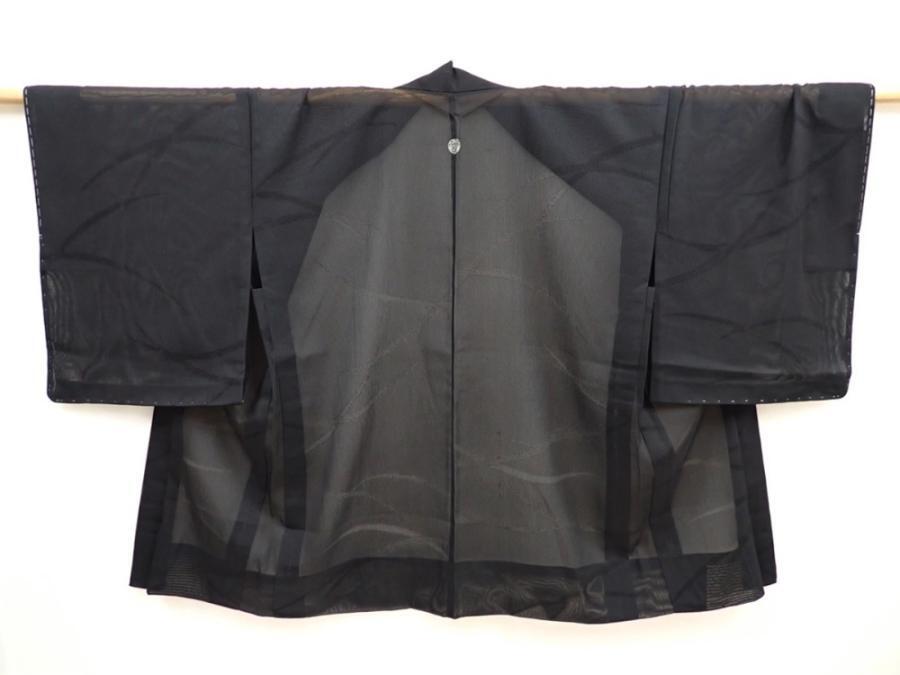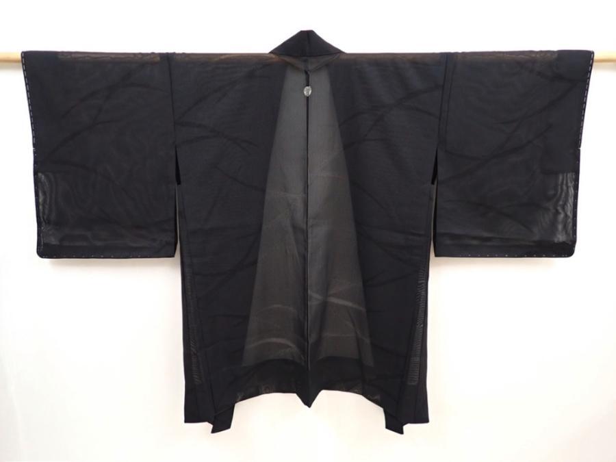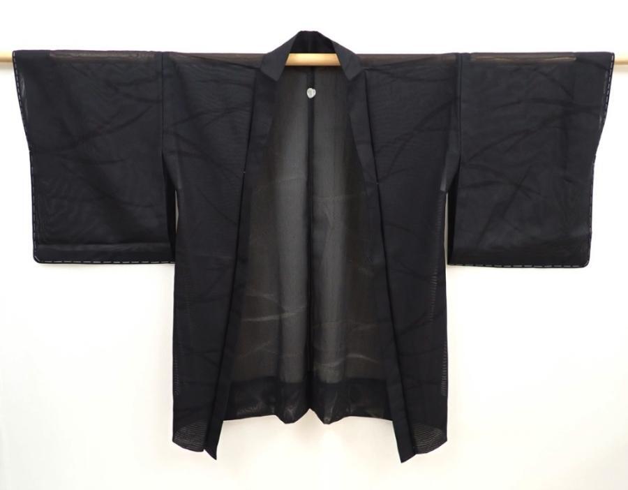 5822T03z310 Vintage Japanese Kimono Silk See through HAORI Black