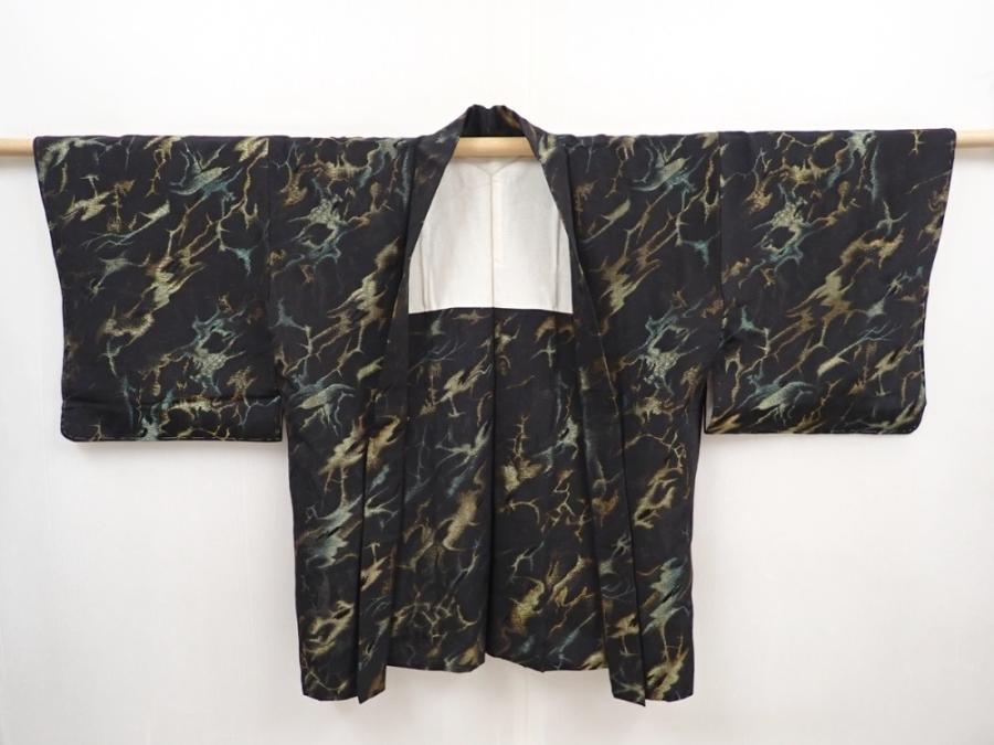 5822T04z780 Vintage Japanese Kimono Silk HAORI Black