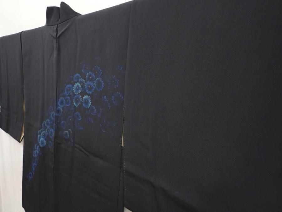 5822T05z530 Vintage Japanese Kimono Silk HAORI Chrysanthemum Black