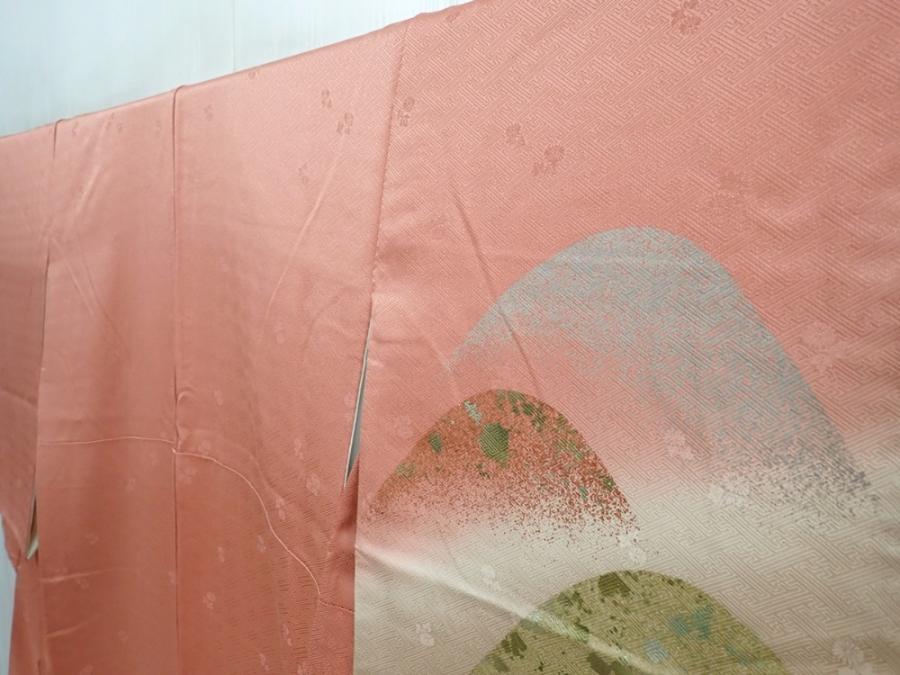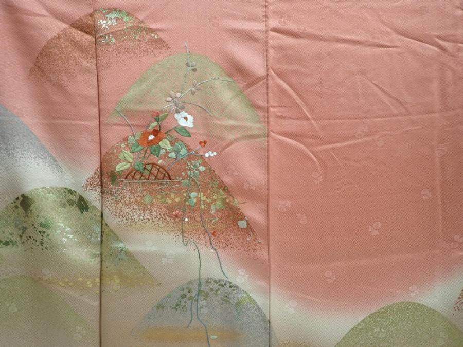 5822T11z990 Japanese Kimono Silk TSUKESAGE Camellia Dark coral