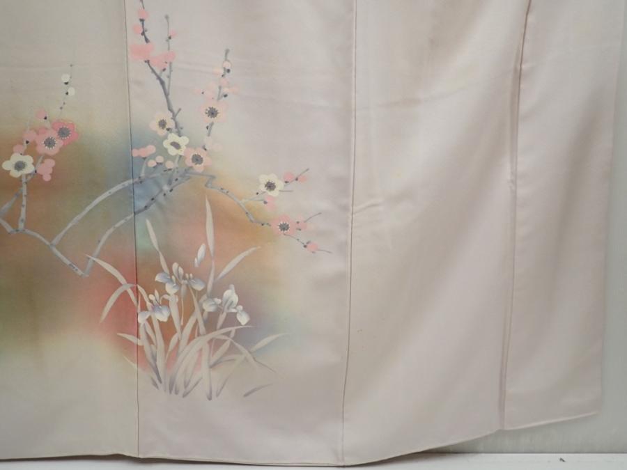 5822T12z1050 Japanese Kimono Silk TSUKESAGE Flowers Light gray