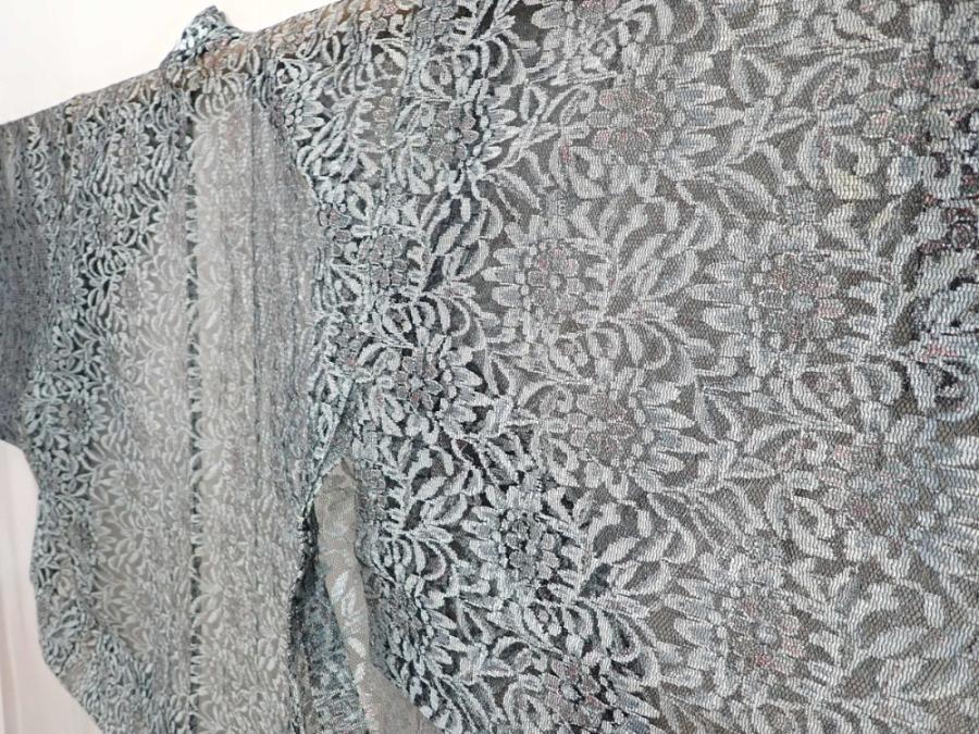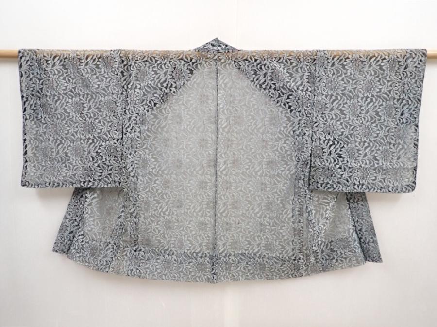 5906T02z260 Vintage Japanese Kimono Synthetic See through HAORI Flower Gray