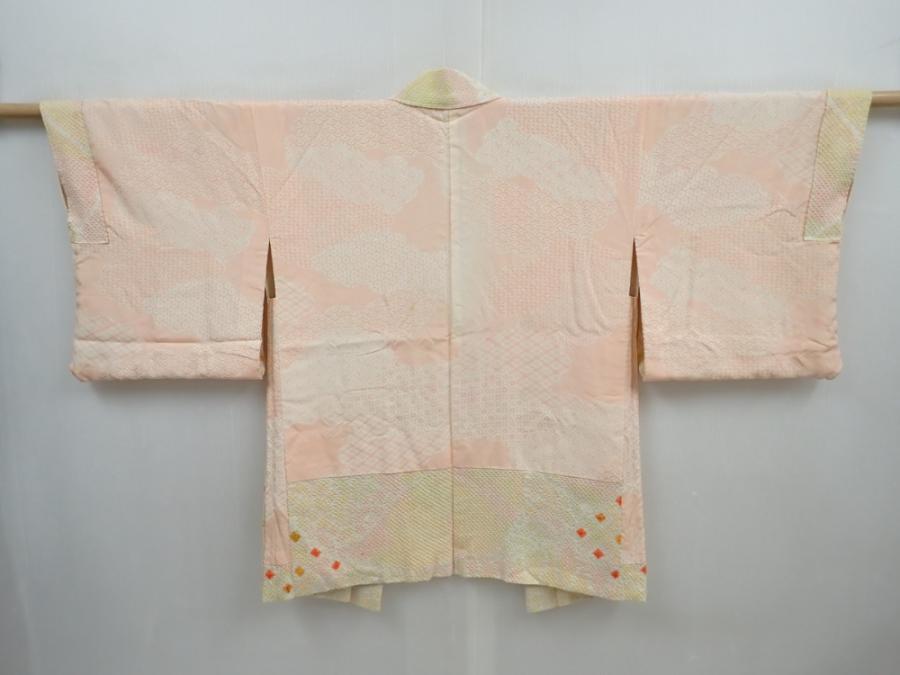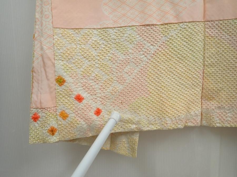 5906T05z450 Vintage Japanese Kimono Silk SHIBORI HAORI Light yellow