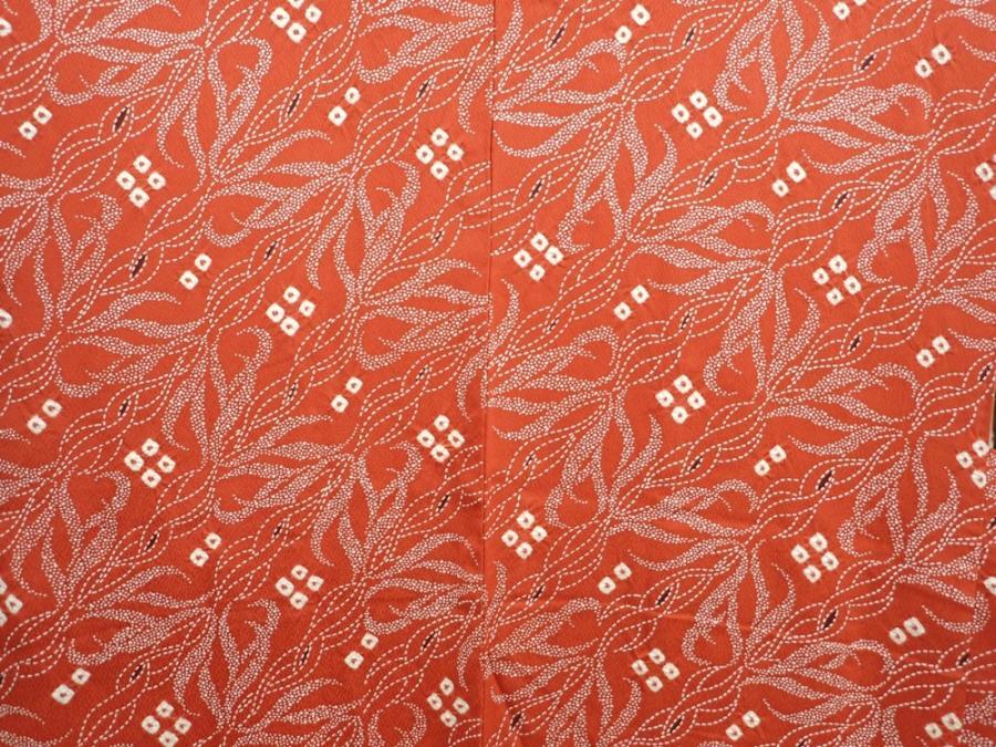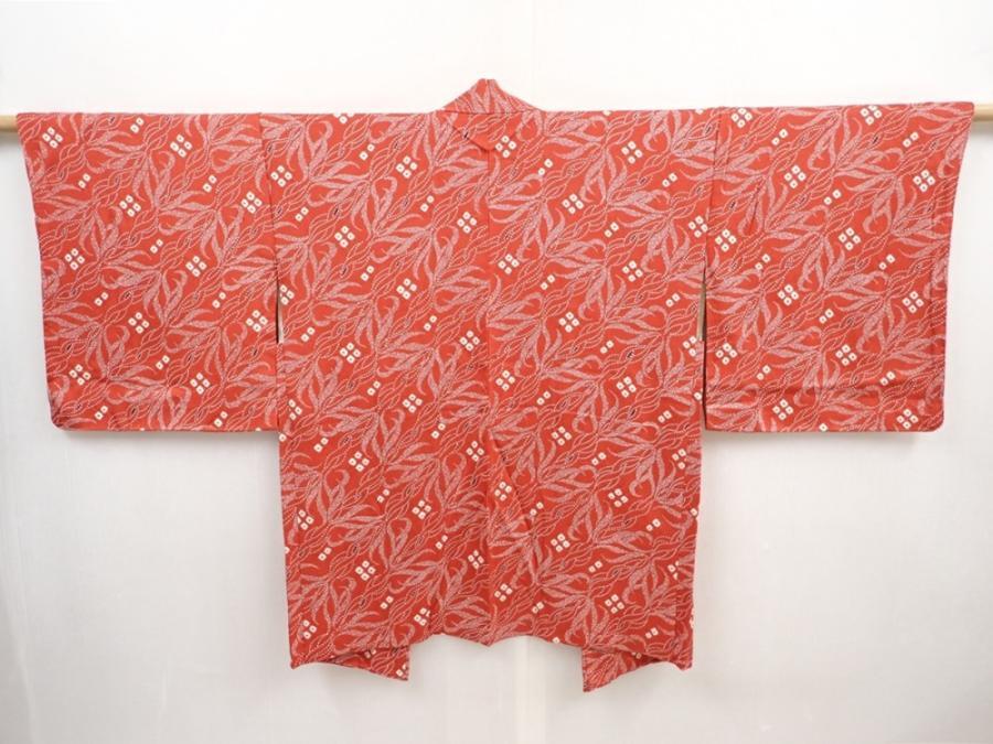 5906T08z590 Vintage Japanese Kimono Silk HAORI Orange-Red