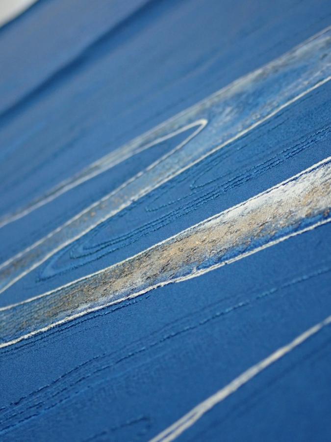 2M01z60 Japanese Kimono Silk FABRIC Stream Dark blue 42.5x14.4