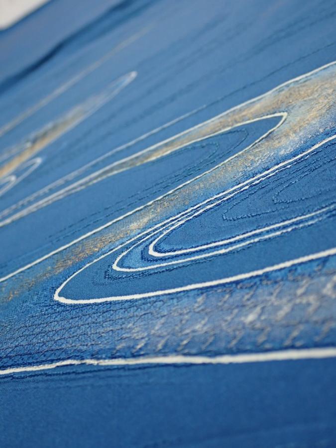 2M02z60 Japanese Kimono Silk FABRIC Stream Dark blue 42.5x14.4