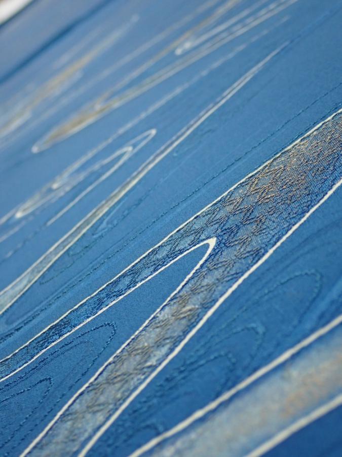 2M03z90 Japanese Kimono Silk FABRIC Stream Dark blue 66.1x14.4