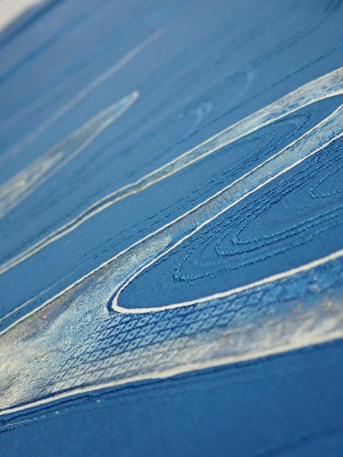 2M05z90 Japanese Kimono Silk FABRIC Stream Dark blue 66.9x14.4