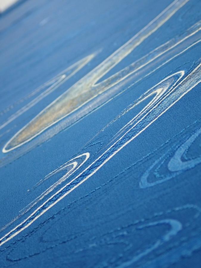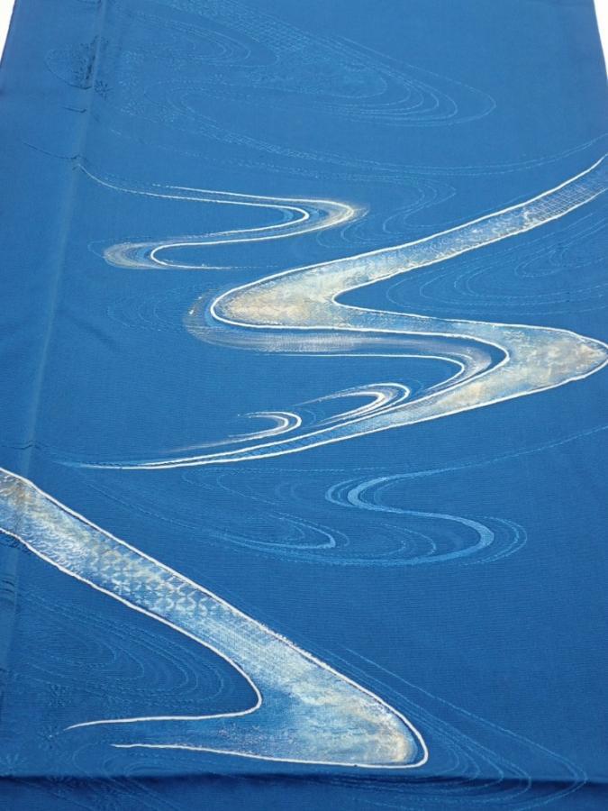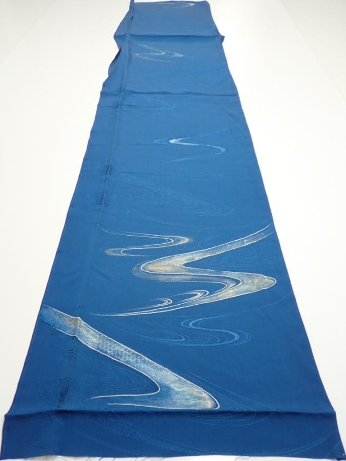2M06z90 Japanese Kimono Silk FABRIC Stream Dark blue 66.9x14.6