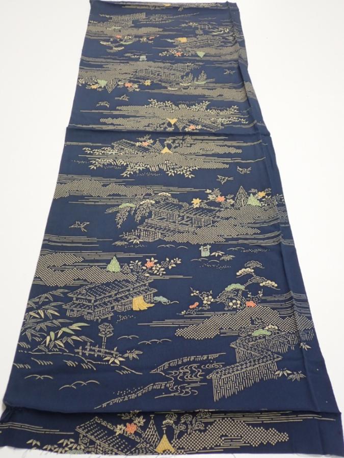 2M01z60 Japanese Kimono Silk FABRIC Old Japanese house Dark navy 40.9x14.4
