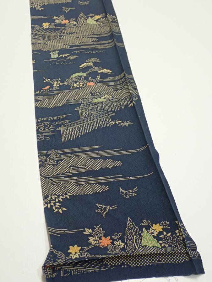 2M08z40 Japanese Kimono Silk FABRIC Old Japanese house Dark navy 58.3x7.1